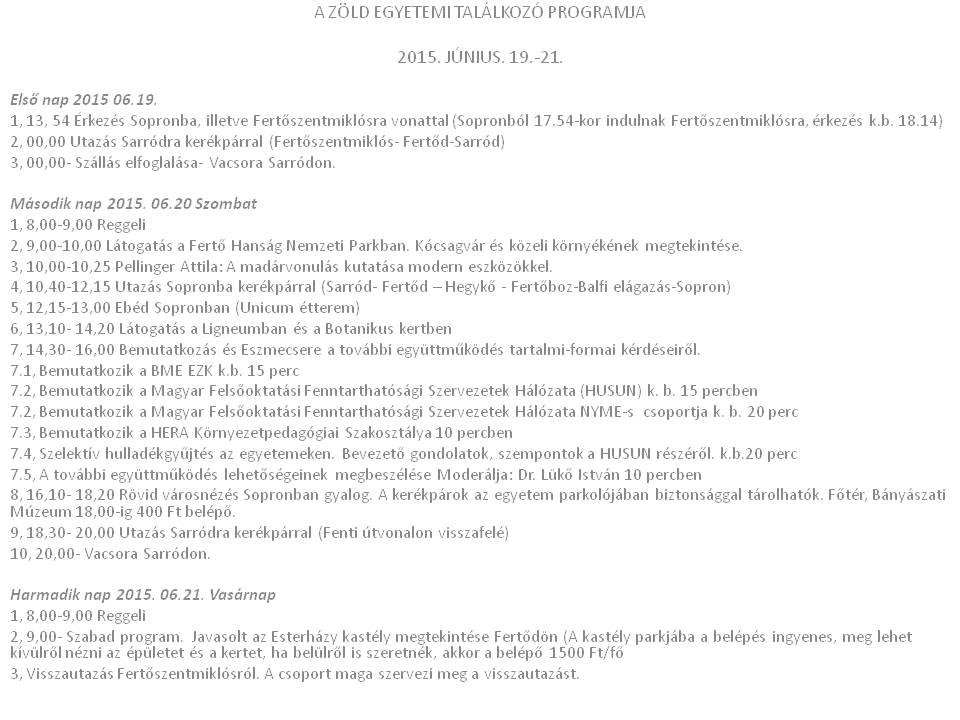 - Zöld Egyetemi Találkozó 2015 június 19.-21. Sopron(ld. Külön)